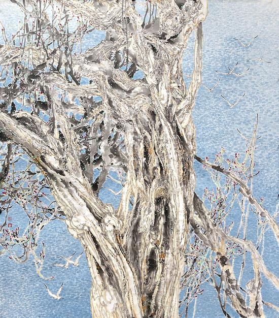闫国星《澄江春早 》 2016年4月 纸本 180 x 180cm