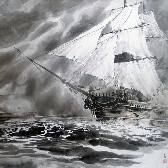 张岩鑫 《风帆时代》纸本水墨 1230×1230cm