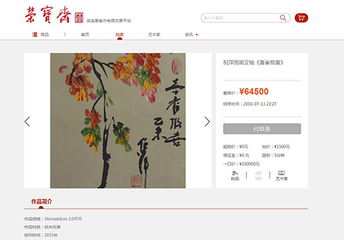 网站显示,该作品以0元无底价起拍,共有十余位买家出价,竞拍达41次。首位买家出价3000元,加价幅度为1500元,拍卖持续至13日晚10时27分。最终,该作品以6.45万元成交,由网友“zhang hao”出价竞得。