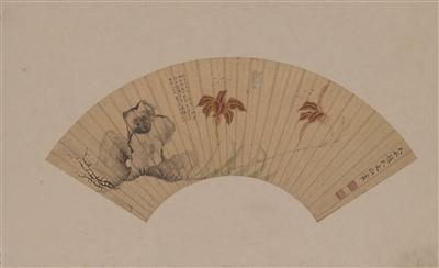 在今年春拍中,文徵明曾孙女文俶扇面以55.2万元成交。其擅画花卉,妍冶秀丽而不失淳厚,无闺阁女子的媚弱之态,是中国历代女画家中之佼佼者。此扇画萱花一丛,一怒放,一初开,初开者侧向,与一花一蝶似作顾盼呼应之状,色泽鲜灵,意态生动。其旁水墨湖石用湿墨粗笔写出,很有雄豪气慨,风格典型,是其极精之作。