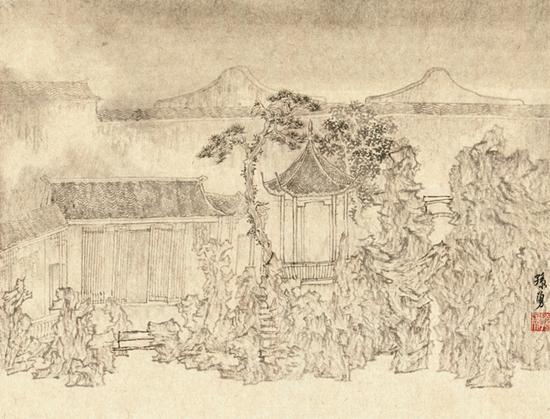 孙勇勤于写生,苏州园林是其写生的重要对象。写生不仅为其创作积累了素材,也锻炼了其独立的艺术语言和表现形式。中国古典园林看重一水一石一世界的自然观念,遵循“虽由人造,宛自天开”的艺术宗旨,浓缩自然并以恰当的比例来展现自然各种意境的变化,并体现了一种生活的哲学。