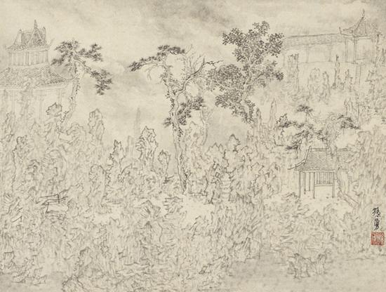 孙勇,园林写生之宝珠山,44.6x39cm