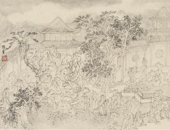 孙勇,园林写生之狮子林,35x46cm