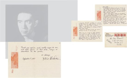 被誉为“日本的海明威”的三岛由纪夫,在1963年9月6日写给美国作家与诗人约翰?古德温一封英文亲笔信,这封信将现身本次西泠秋拍。信笺共一通三页(附信封一枚)。