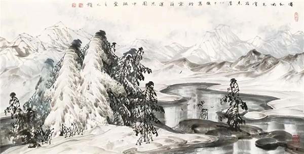 冰雪山水画追求“冷逸之美”。这种冷逸之美,排除了繁杂的色彩,体现出朴拙自守、空灵疏淡的艺术境界,创造出一个祥和宁静、恬淡温情、令人神往的冰雪世界。